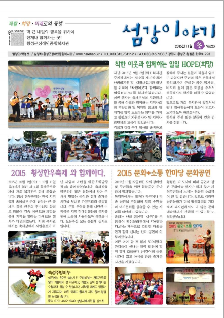 섬강이야기 23호 페이지 정보 작성자횡성군장애인종합복지관 작성일2025-11-04 첨부파일 섬강이야기-23호.pdf (901.9K) 본문 섬강이야기 23호 이전글섬강이야기 24호 2025-11-04 다음글섬강이야기 22호 2025-11-04 목록 답변