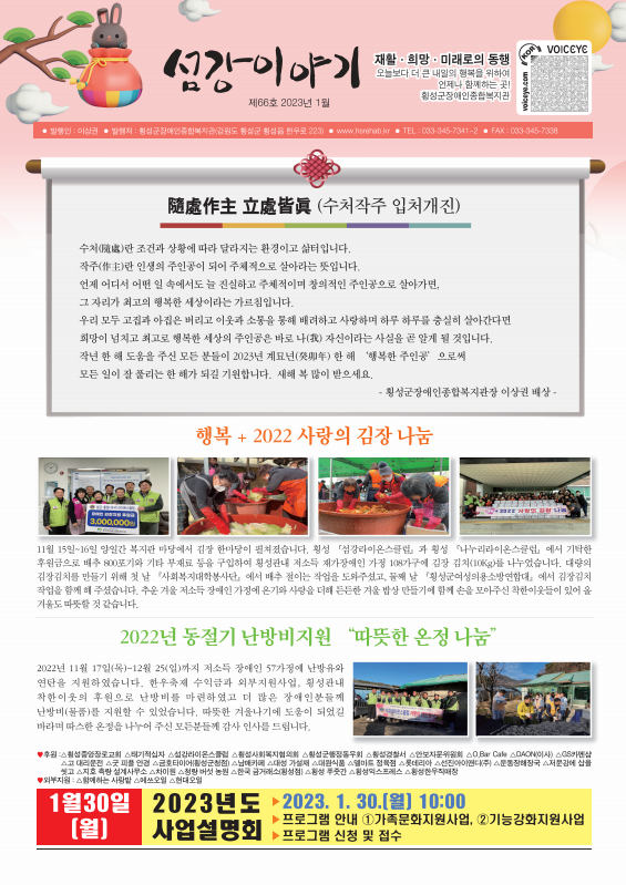 섬강이야기 66호 페이지 정보 작성자횡성군장애인종합복지관 작성일2025-11-10 첨부파일 섬강이야기66호웹.pdf (8.5M) 본문 섬강이야기 66호 이전글섬강이야기 67호 2025-11-10 다음글섬강이야기 65호 2025-11-10 목록 답변
