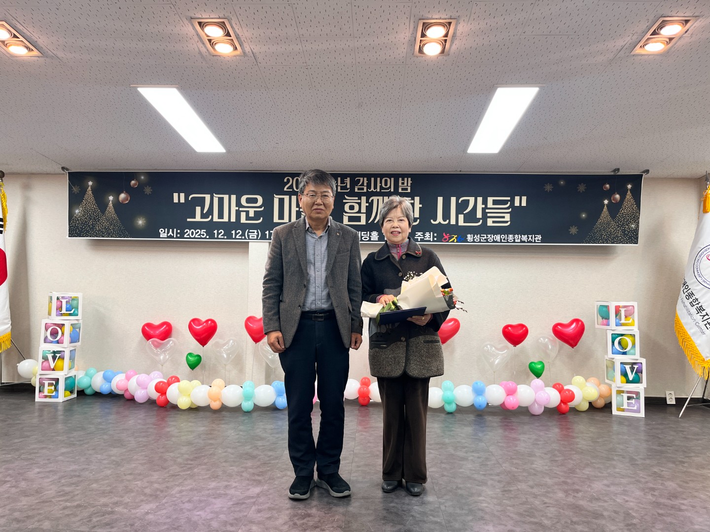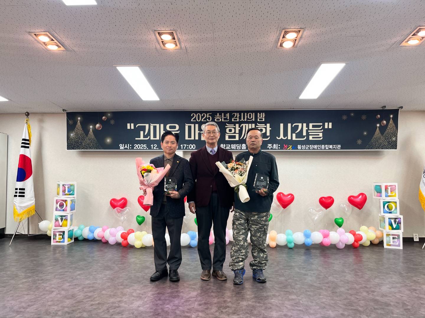 12월 15일(금요일) 횡성 향교웨딩홀에서 2025년 송년 감사의 밤 “고마운 마음, 함께한 시간들” 행사를 진행하였습니다.