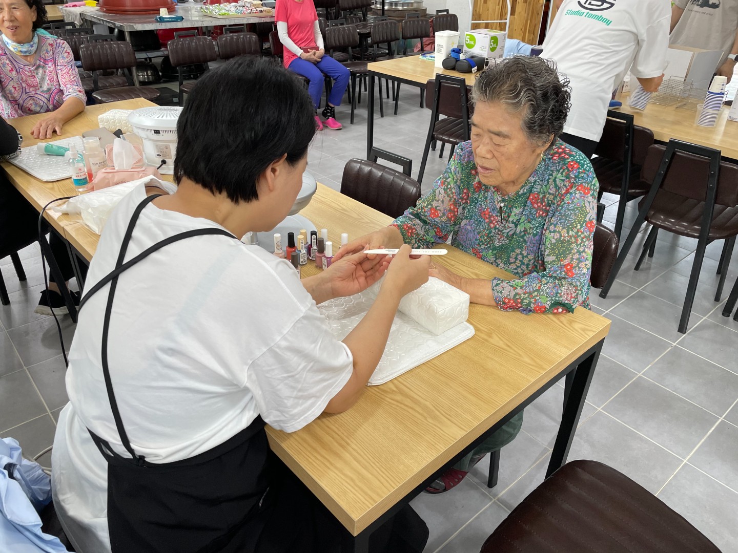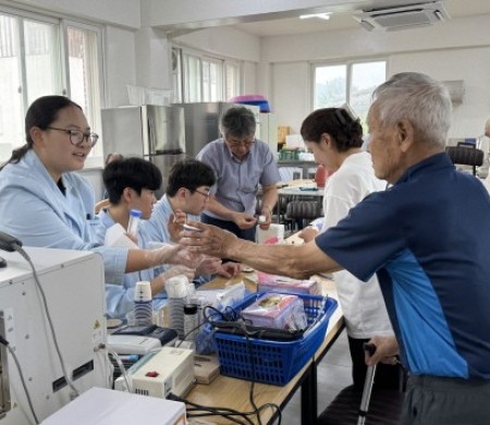 복지상담, 물품꾸러미 전달, 보장구 수리, 임상병리(채혈, 소변,가래검사), 손마사지, 네일아트, 귀지제거 및 점검 실시로 마을 주민과 함께하는 시간을 가졌습니다.