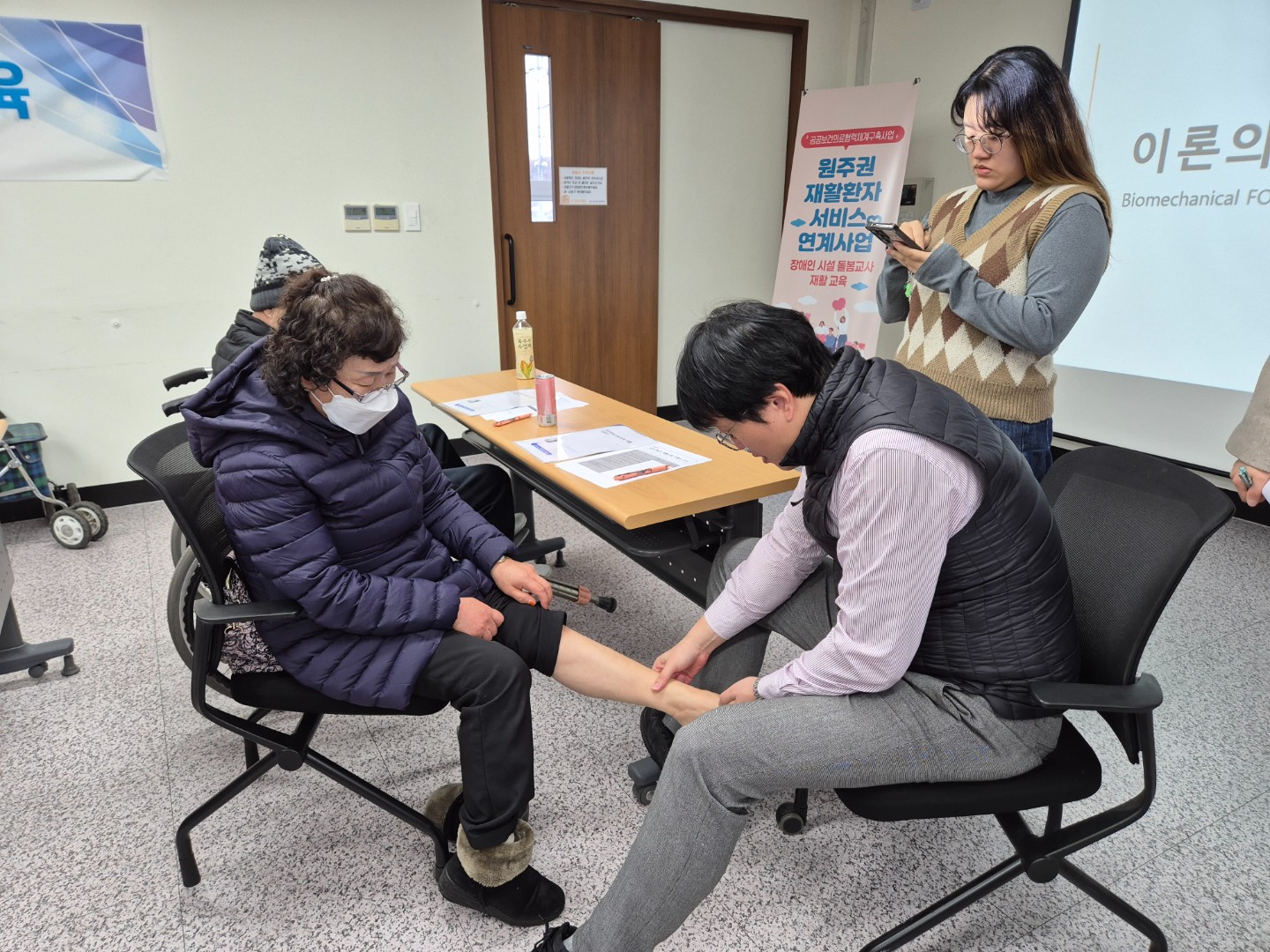 이번 교육은 원주의료원 2025년 공공보건의료협력체계구축 사업의 일환으로 강사를 지원받아 공동으로 진행하게되었습니다. 위플재활연구소장 양승완(현 가천대학교 작업치료학과 교수)교수님께서 강의와 맞춤 재활 상담으로 대상자분들의 상태에 맞는 운동처방과 관리 방법에 대해 친절히 설명해 주셨습니다.