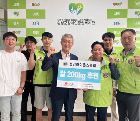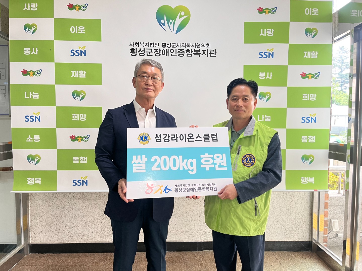 횡성섬강라이온스클럽(회장 윤한영)는 7월 16일(수) 쌀200kg을 복지관에 후원해주셨습니다.