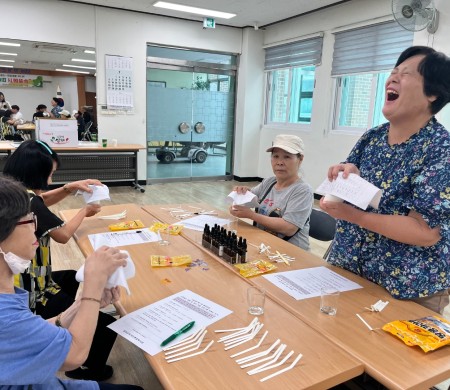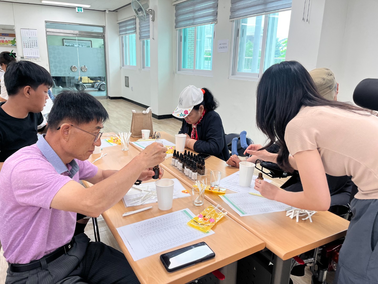 좋아하는 향을 골라서 한방울, 두방울 편백나무에 향을 입혀주며 힐링 할 수 있는 좋은 시간이었습니다.