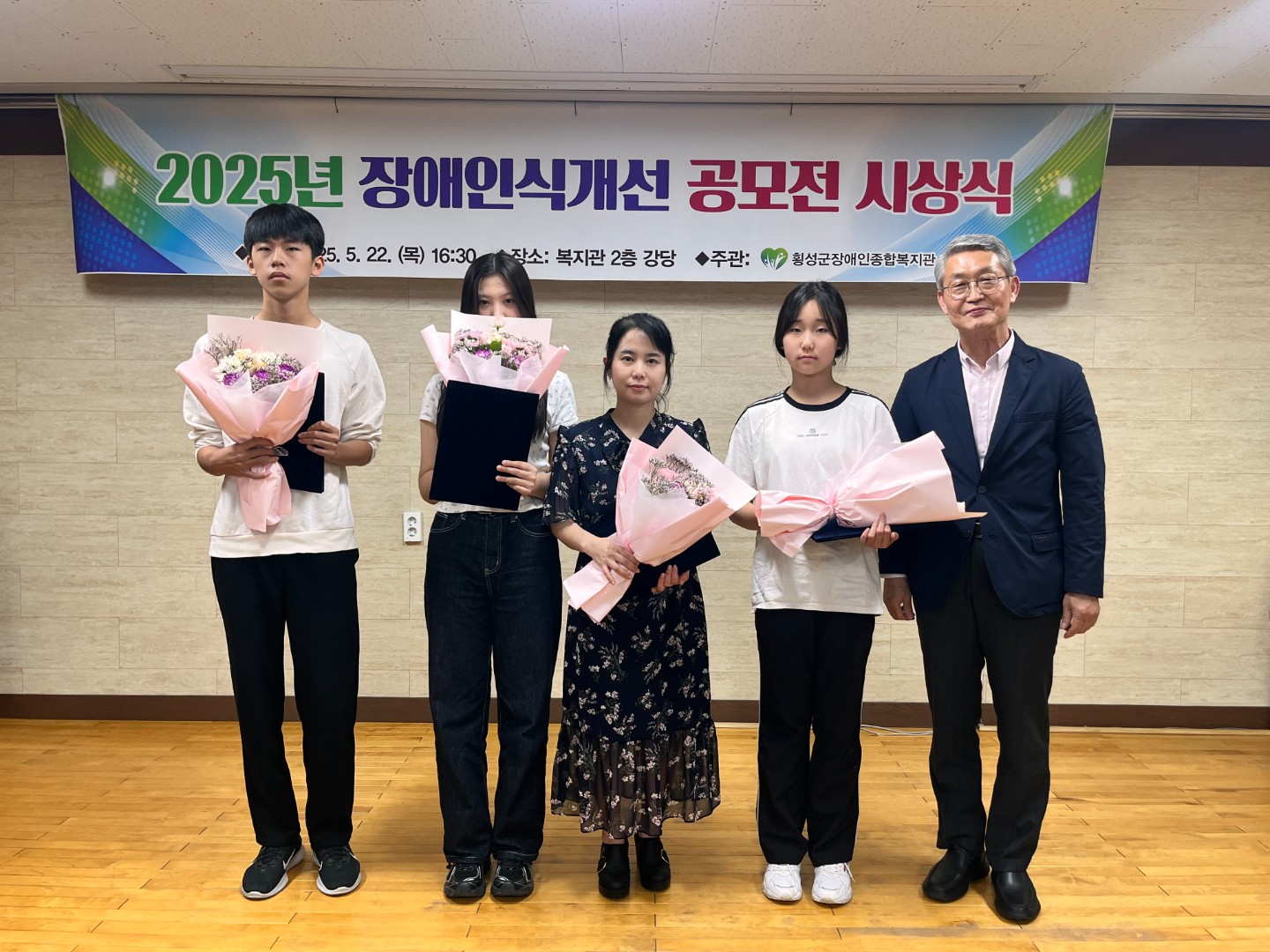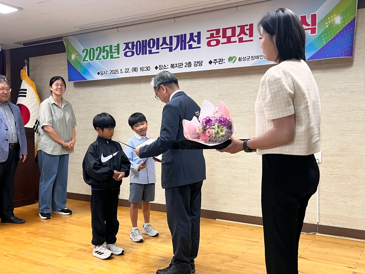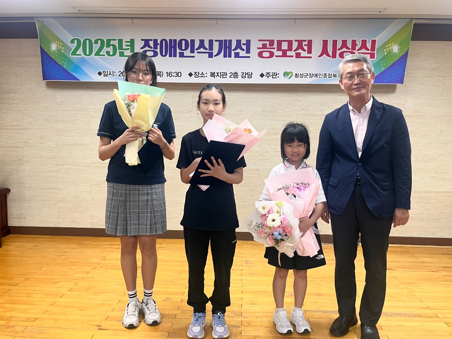 시상식에는 횡성교육지원청교육장(교육장 심영택)이 내빈으로 참석하여 수상자들에게 직접 상장을 전달하고 장애인식개선에 기여한 이들의 노고를 치하하며 축하의 인사를 전해주셨습니다. 또한 수상에는 이르지 못했지만 공모전에 참여한 참가자들을 격려하고자, 공정한 무작위 추첨을 통해 40명을 추가로 선정하여 감사의 뜻을 담은 참여 감사 상장을 우편으로 발송하였습니다.