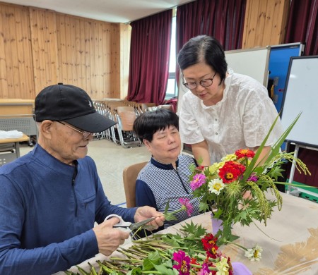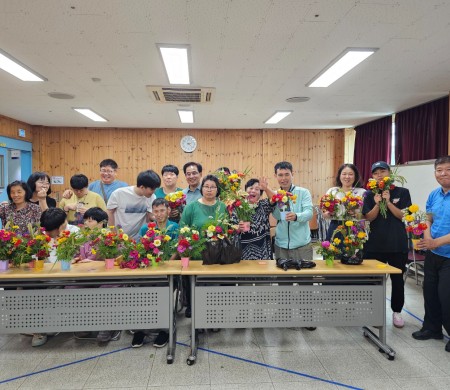 이번 프로그램은 김항기 강사님의 재능기부 및 재료 후원, 그리고 지역주민이 함께하는 참여형 꽃꽂이 활동으로 진행되었으며 계절 꽃을 활용해 자신만의 작품을 완성하며 따뜻한 교류의 시간을 가지는 뜻깊은 시간이었습니다.
